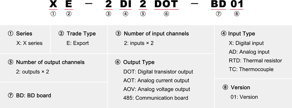 | 8 | XE-1AI1RTD-BD | 1AI, tipo de corrente de 16 bits; Resistor térmico de 1 via, suporte PT100 | entrada analógica ×2, entrada RTD ×1 |