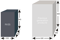 | Design refinado Área de instalação reduzida em 50% Volume reduzido em 30% | |