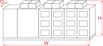 | Model | Potência do inversor de frequência ( kW ) | Capacidade ( kVA ) | Corrente de saída (UMA) | Tamanho do VFD ( D*D*H mm ) | Peso ( T ) |