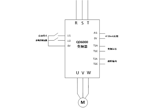 | 06 Uso no local: De acordo com a situação do espaço no local, um inversor da série RVE32 é instalado no gabinete de controle, e a instalação do inversor e o motor no local são mostrados na figura. | | ||||||||||||||||||